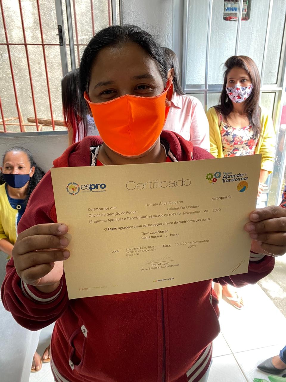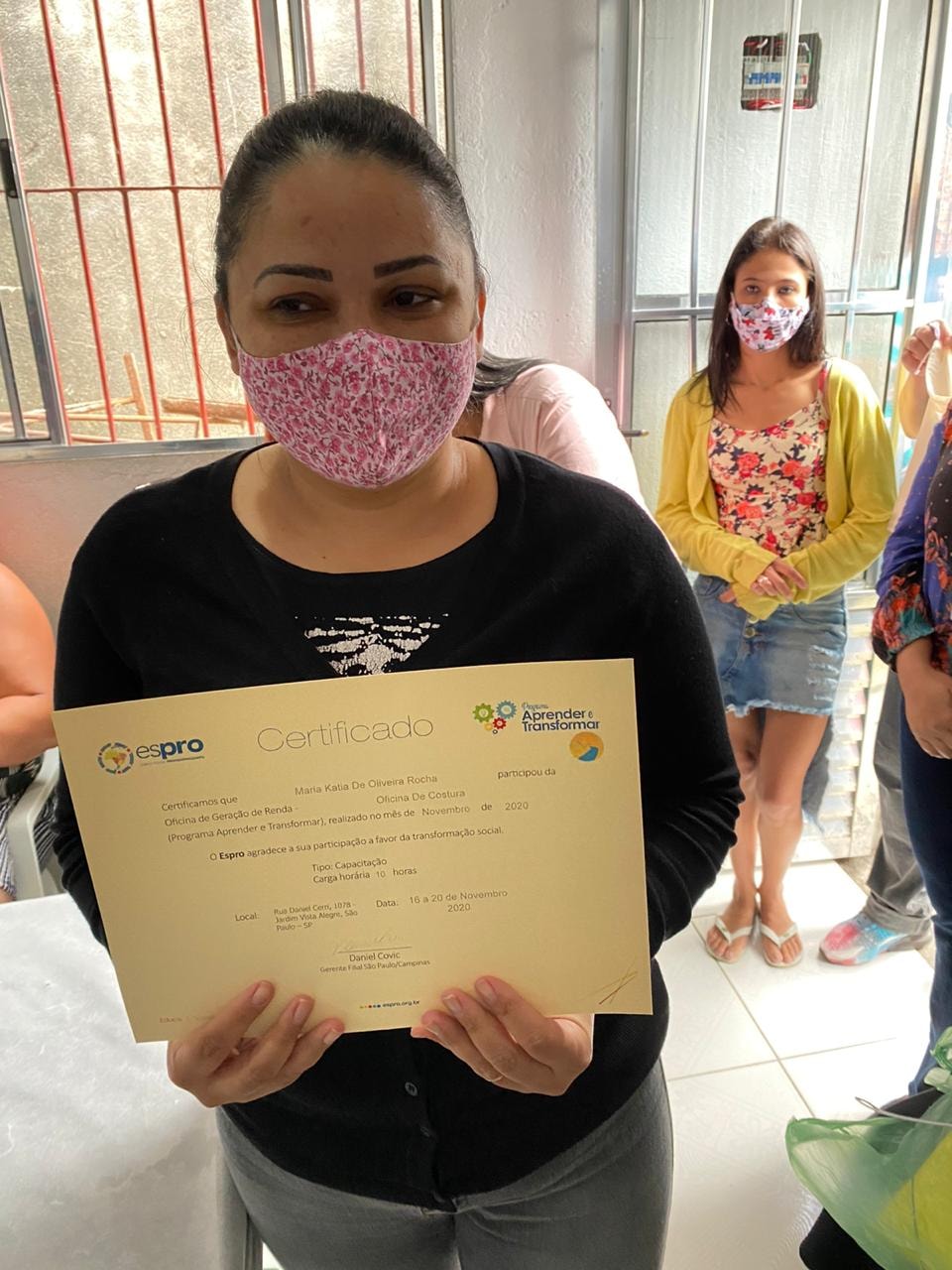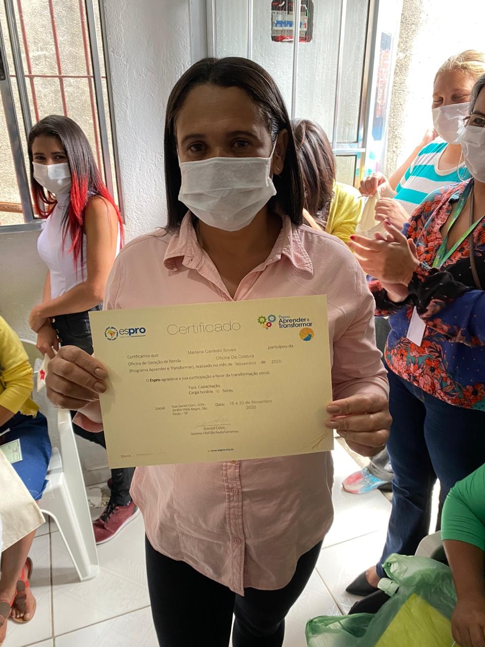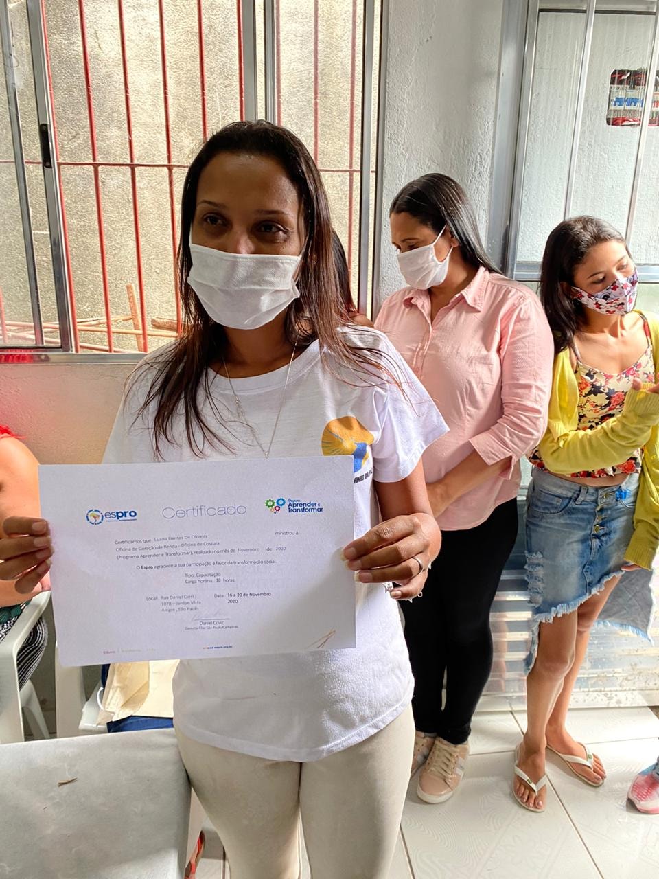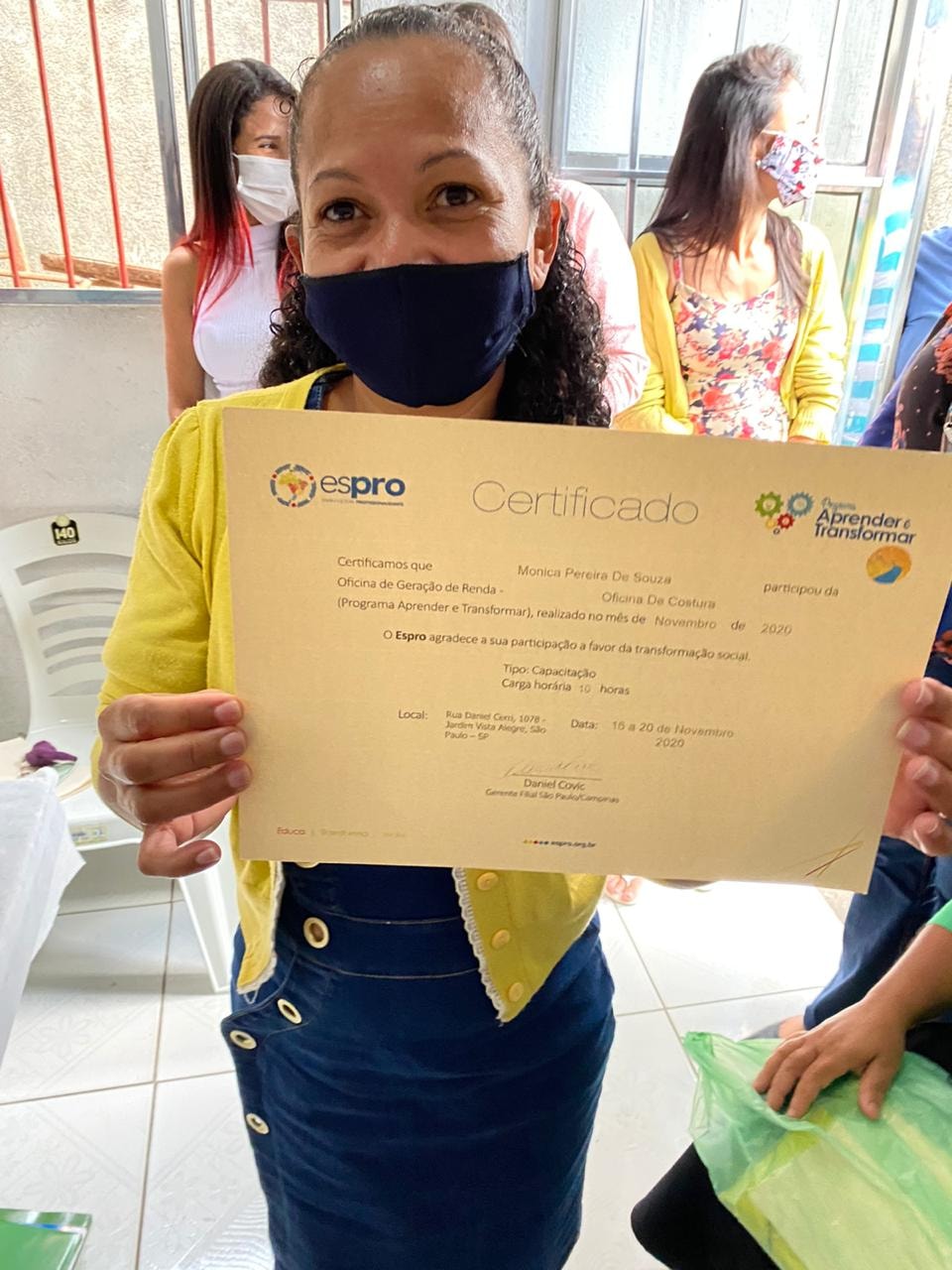 A oficina foi realizada no Jardim Paraná – região da Brasilândia (extremo norte da cidade), em parceria com o Instituto Caminho da Paz. Ao todo, 17 participantes foram iniciados na arte de corte e costura e foram criados 60 ecobags e 60 saquinhos. As peças confeccionadas formarão uma embalagem muito especial para a entrega do prêmio Espro Melhores Escolhas, aos parceiros vencedores da edição 2020. Também houve sorteio de uma máquina de costura doméstica entre os participantes – Tatiane Rodrigues Silva foi a contemplada.
