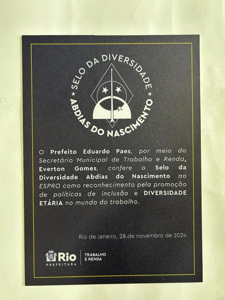 O Selo foi entregue em reconhecimento a empresas e instituições que promovem a inclusão e, além disso, implementam políticas que reduzem desigualdades nos ambientes de trabalho. A Prefeitura do Rio de Janeiro, por meio da Secretaria Municipal de Trabalho e Renda (SMTE), concedeu a premiação. O nosso gerente regional Flávio Leite representou o Espro com maestria no evento aconteceu no dia 28 de novembro, no Museu da História e da Cultura Afro-Brasileira (Muhcab), localizado na Gamboa, Rio de Janeiro.