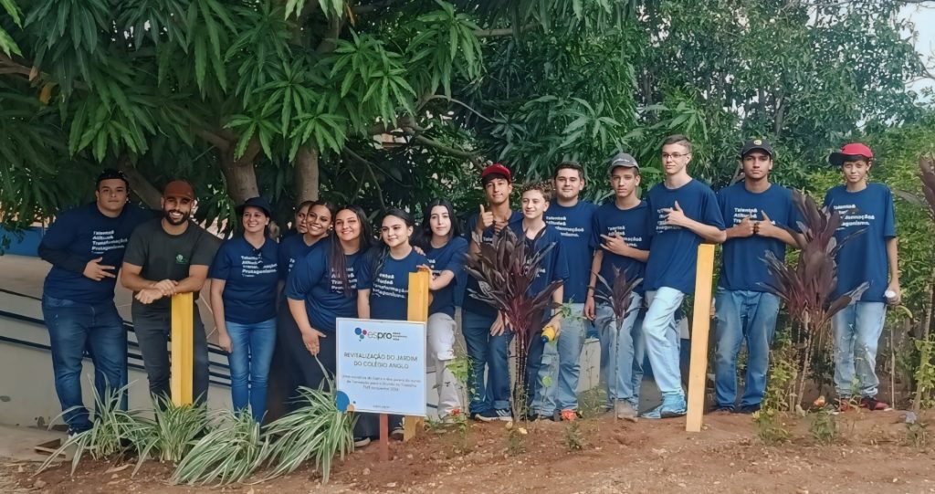 Uma turma animada de 18 jovens formandos do curso de capacitação profissional do Espro (Ensino Social Profissionalizante) com foco ambiental em Mogi Guaçu fez a grande diferença no jardim da escola Anglo!